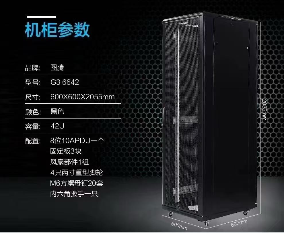 标准:符合ANSI/EIA RS-310-D、IEC297-2、DIN41494;PART1、DIN41494;PART7、GB/T3047.2-92;兼容ETSI标准。特点:单开平板六角网孔前门;单开平板六角网孔后门,可选双开平板六角网孔后门;网孔通风率为75%;美观牢固;前后门配典雅锁;前后门可改为双开。承载:静载800KG(带支架),防护等级:IP20,主要材料:方孔条与安装梁:耐指纹敷铝锌板;其余:SPCC优质冷轧板;厚度:方孔条 2.0mm;安装梁 1.5mm;其余 1.2mm。表面处理:方孔条、安装横梁:镀铝锌板 ;其余:脱脂、硅烷化处理 、静电喷塑